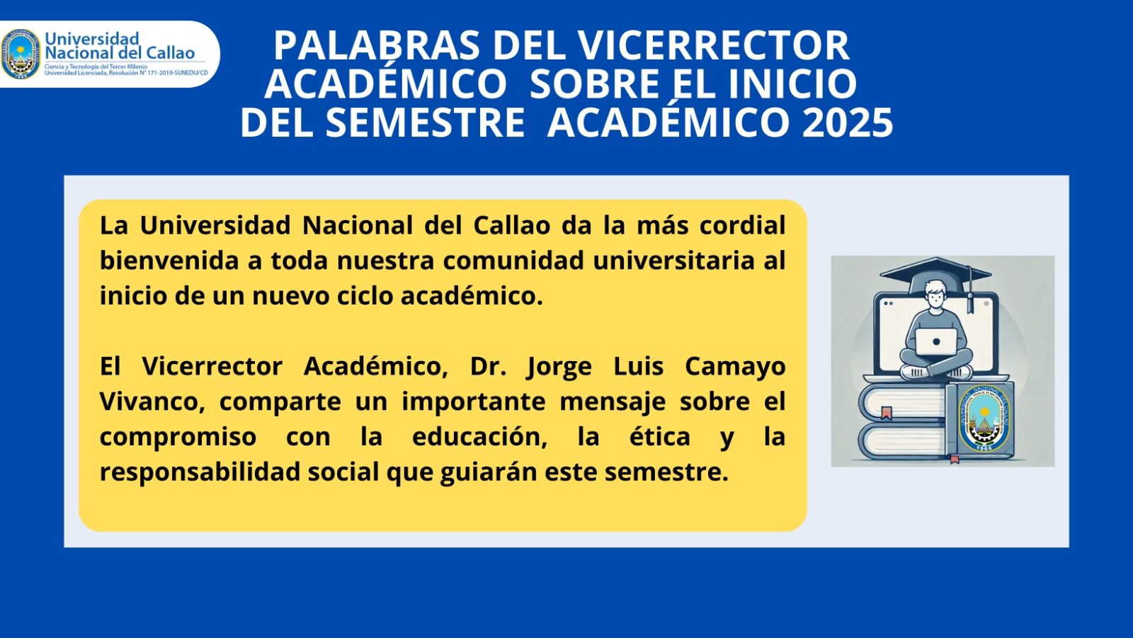 La Universidad Nacional del Callao da la más cordial bienvenida a toda nuestra comunidad universitaria al inicio de un nuevo ciclo académico.