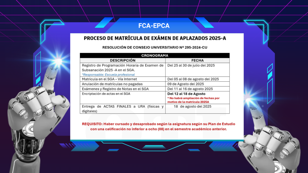 Posted on 24 de julio de 2025 CTIC FCA No Comments PROCESO DE MATRICULA DE EXAMEN DE APLAZADOS 2025-A